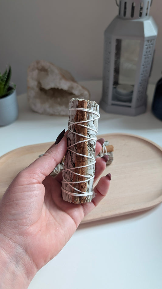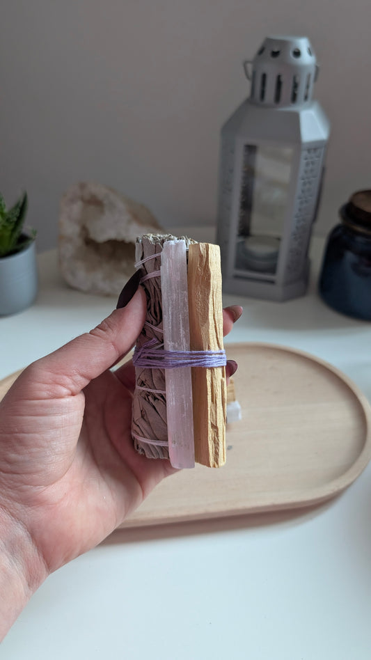 Bâton de purification - Sauge blanche de Californie, Palo Santo et sélénite