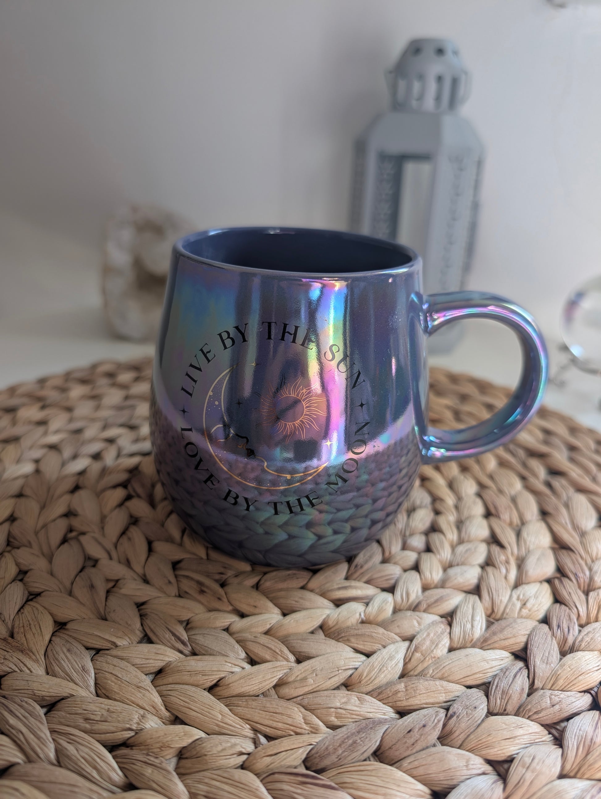 Inscription "Live by the sun, love by the moon", littéralement : vis avec le soleil, aime avec la lune.